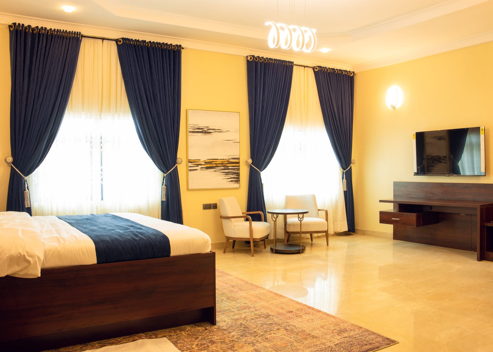 Enjoy all the amenities of a 5-star experience, including high-speed Wi-Fi, smart entertainment systems, premium toiletries, climate control, and 24-hour electricity and room service. Whether you're here for business or leisure, our rooms provide a sanctuary of peace and indulgence, ensuring your stay is nothing short of exceptional.
